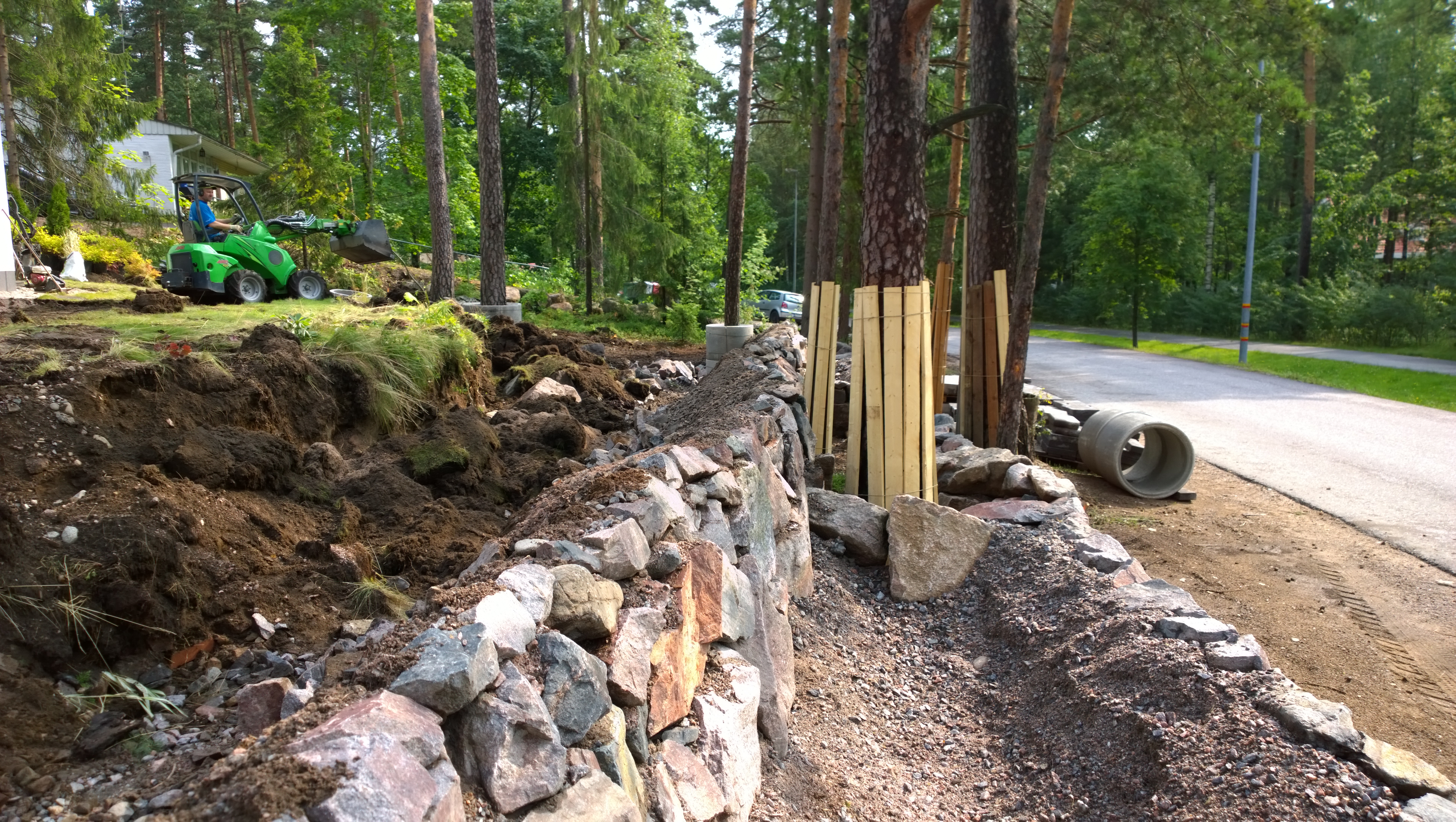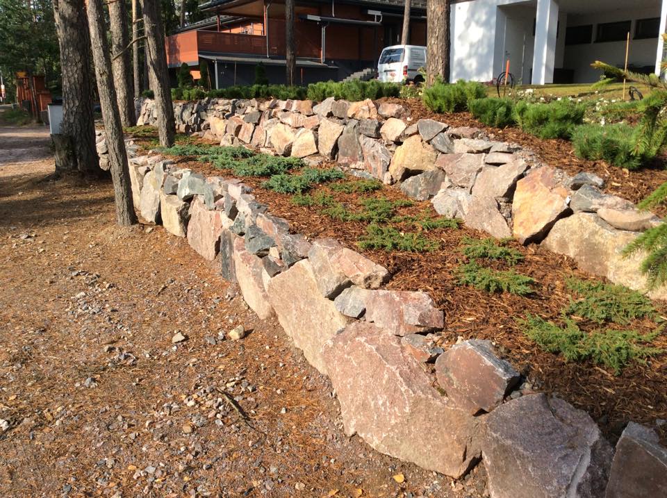 During three summers I worked as a landscaper for a Helsinki region based company. We designed and constructed challenging gardens and public areas. I was part of forming many gardens, with hedge cutters, excavator and dirty gloves. We used rock a lot, building retaining walls, staircases and plant beds. I worked solo, with a companion and in teams at different sites, sometimes even in the archipelago. I