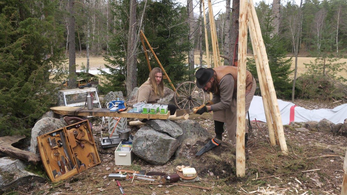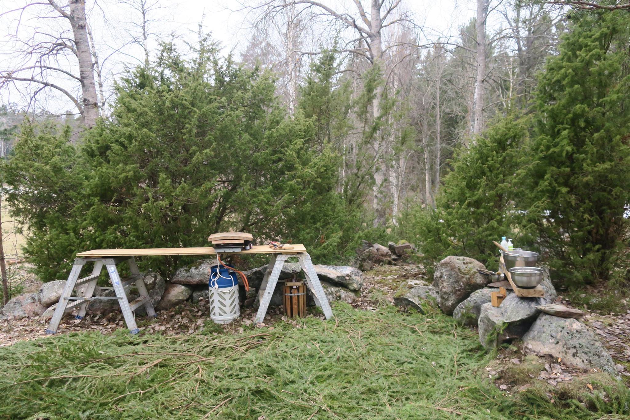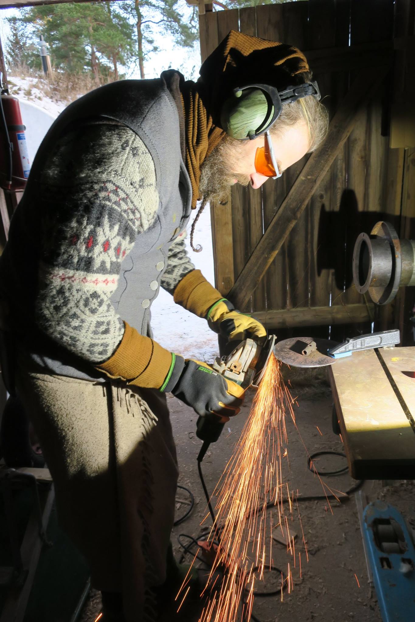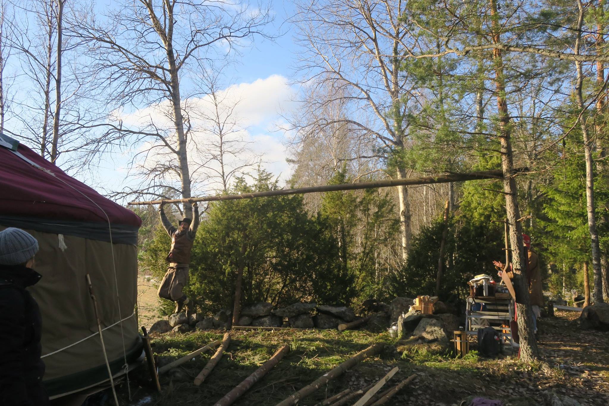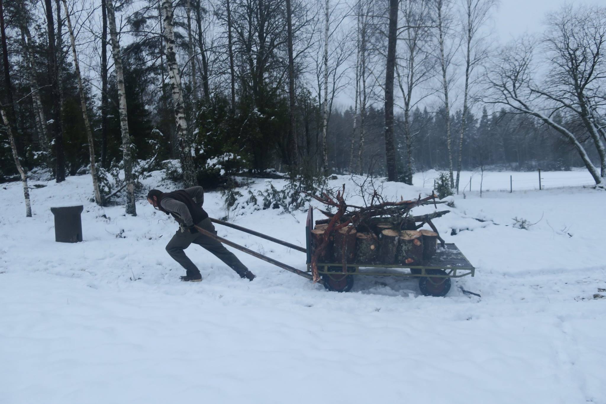I assisted Magnus in establishing a yurt dwelling throughout winter in a Swedish ecovillage. We made a platform, for the yurt he had previously built. We constructed a sturdy door and frame from oak, and fastened them with beautifully handcrafted hinges. At this stage we moved into the yurt. Once the yurtdwelling was insulated, and with a working fireplace we began constructing an outdoor kitchen, a composting toilet, a workshop, and set up the necessary systems, like composting and fire wood making. We used whatever materials we could find from pallets, to on site harvested logs, and wonderful planks from local sawmills. We lived together in the yurt after raising it, and collaborated with the community to use their tools, bathroom, water and electricity.