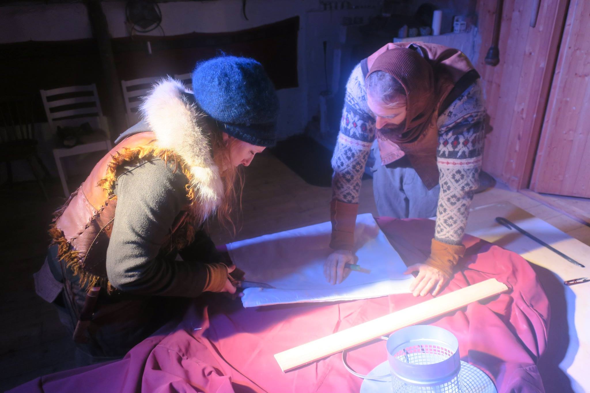 Crafts and tool care was conducted evening time now that the yurt is raised