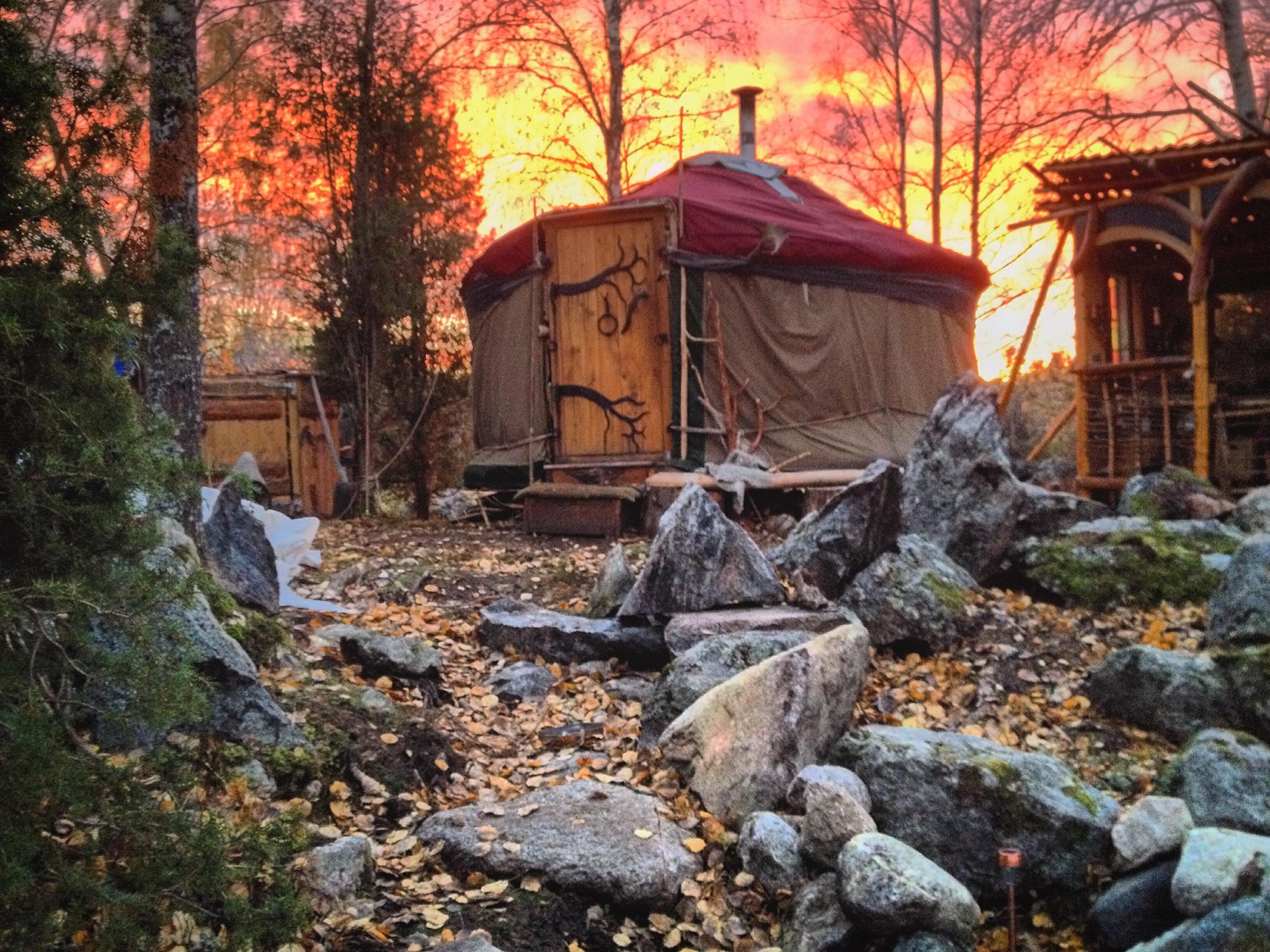 We collaborated with other individuals skilled in carpentry, planning, planting, playing and processing. I arranged the rocks on site, and created planting beds, sitting arrangements, circles, and fireplaces. We also hosted events and told stories around the fire. Days were filled with working out the details of living in a yurt, from insulation, fire safety, water retention and structural integrity. Winter passed by quickly and smoothly.
