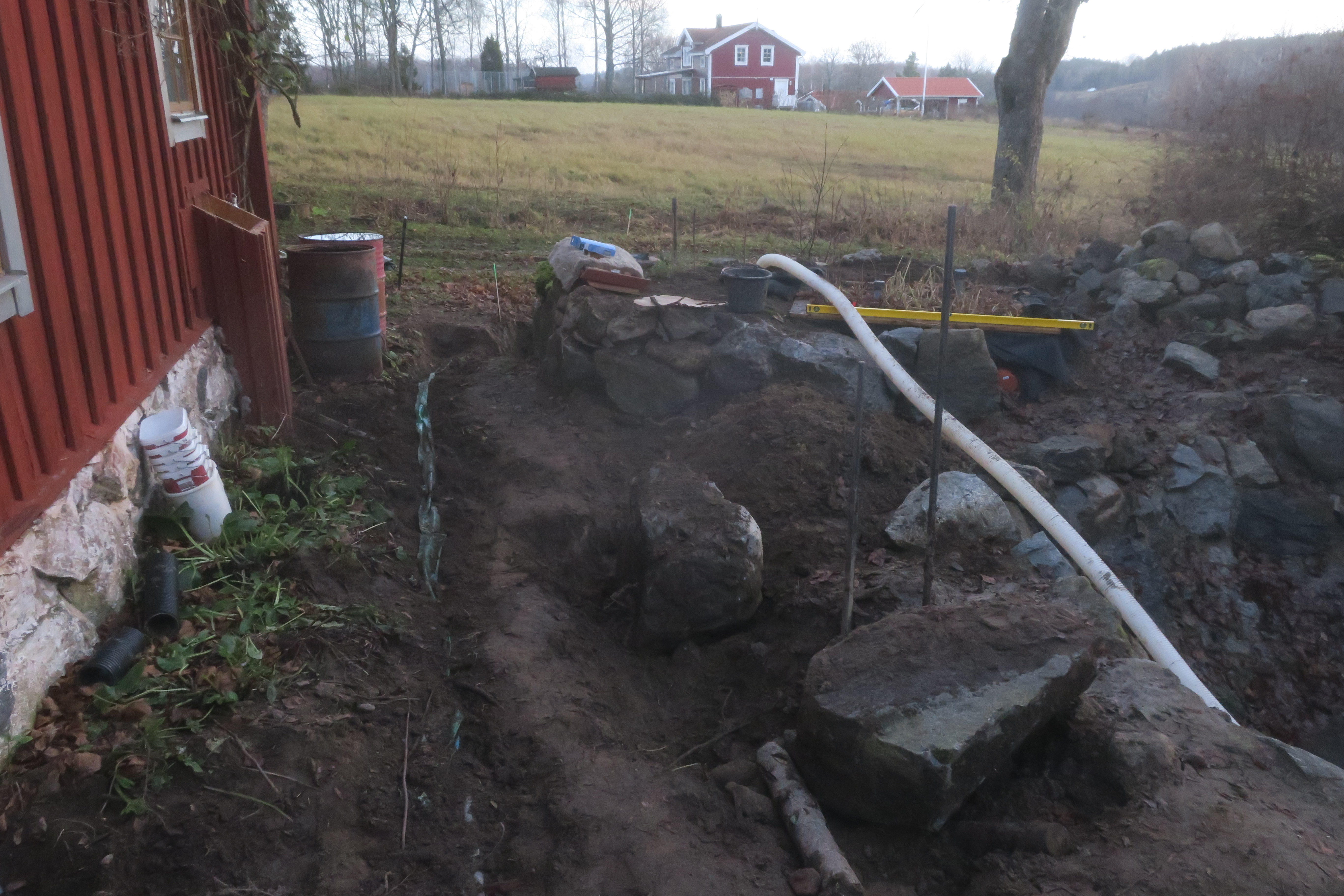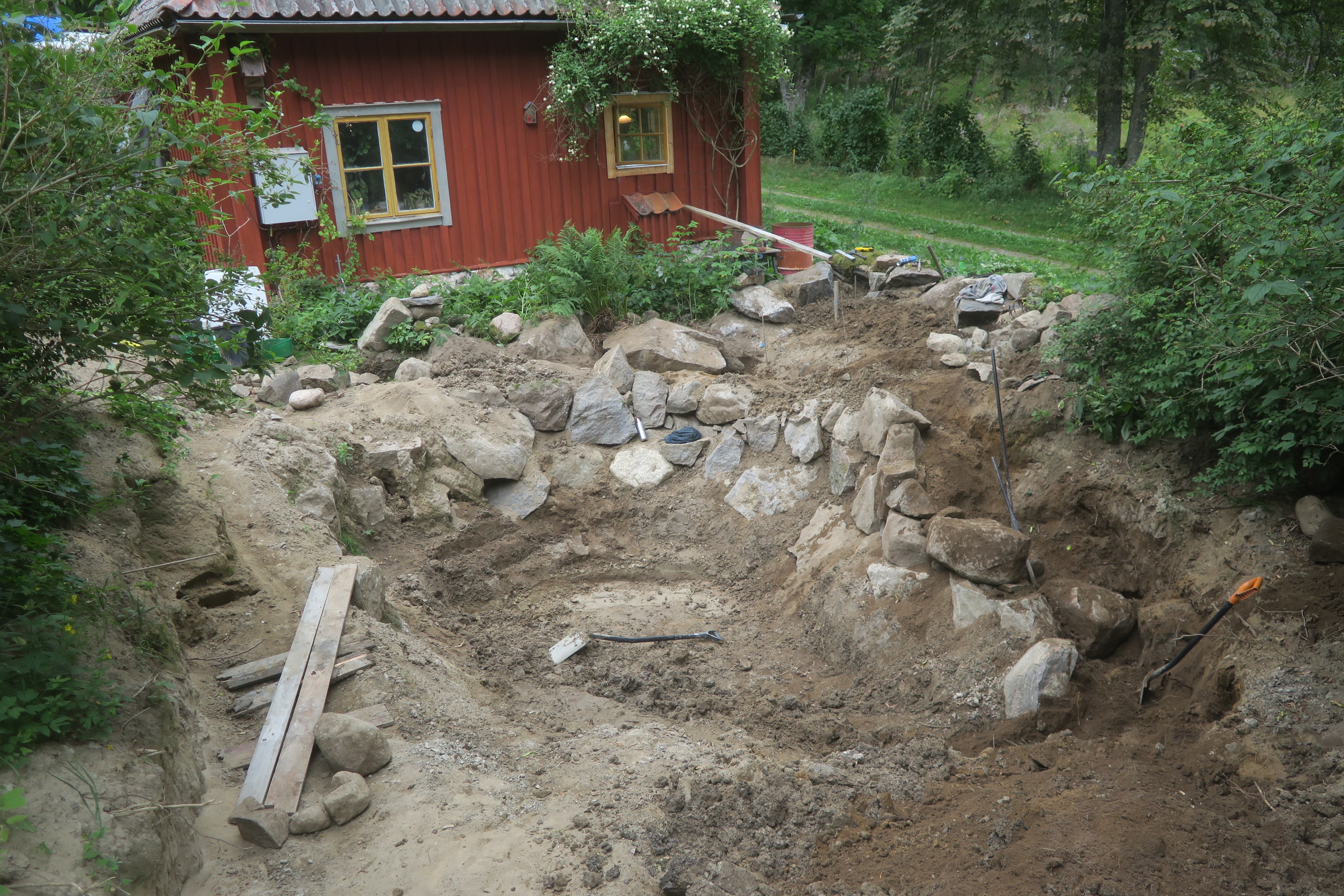 This cottage called Backen (the Hill), earliest dating is from 1752 in its current location. However, there lies an even older rock foundation next to the current position, and there are indications of the cottage having been moved to this property from some entirely different location all together. It was designed by Royal architect Jean de la Vallée (1624-1696) as a guardshouse along the King’s Road ‘Eriksgatan’, belonging to the castle Öster Malma. There exists an identical house on the other side of the called Bruket. The cottage was purchased by the Rundgren family in 1993.