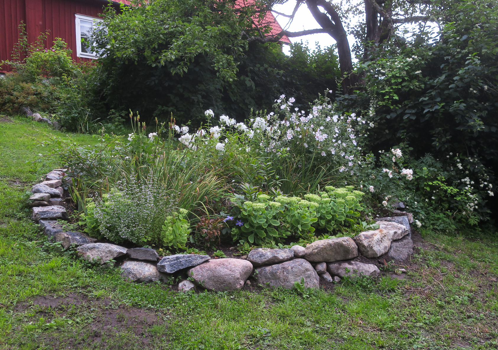 One never knows what one can find when digging in old gardens. In the case of this 18th century villa, we found many rocks, boulders, and some old foundations. The purpose of the digging was to make a flower bed. Thanks to the rocks, the flowers got a beautiful frame. Adittionally the rocks helped retain the soil, which allowed a broader variety of flowers to be chosen by the customer. The foundations did limit the size and form of some of the beds, but we made it work in our favour. The largest of rocks were also limiting factors, as all work was done by hand.