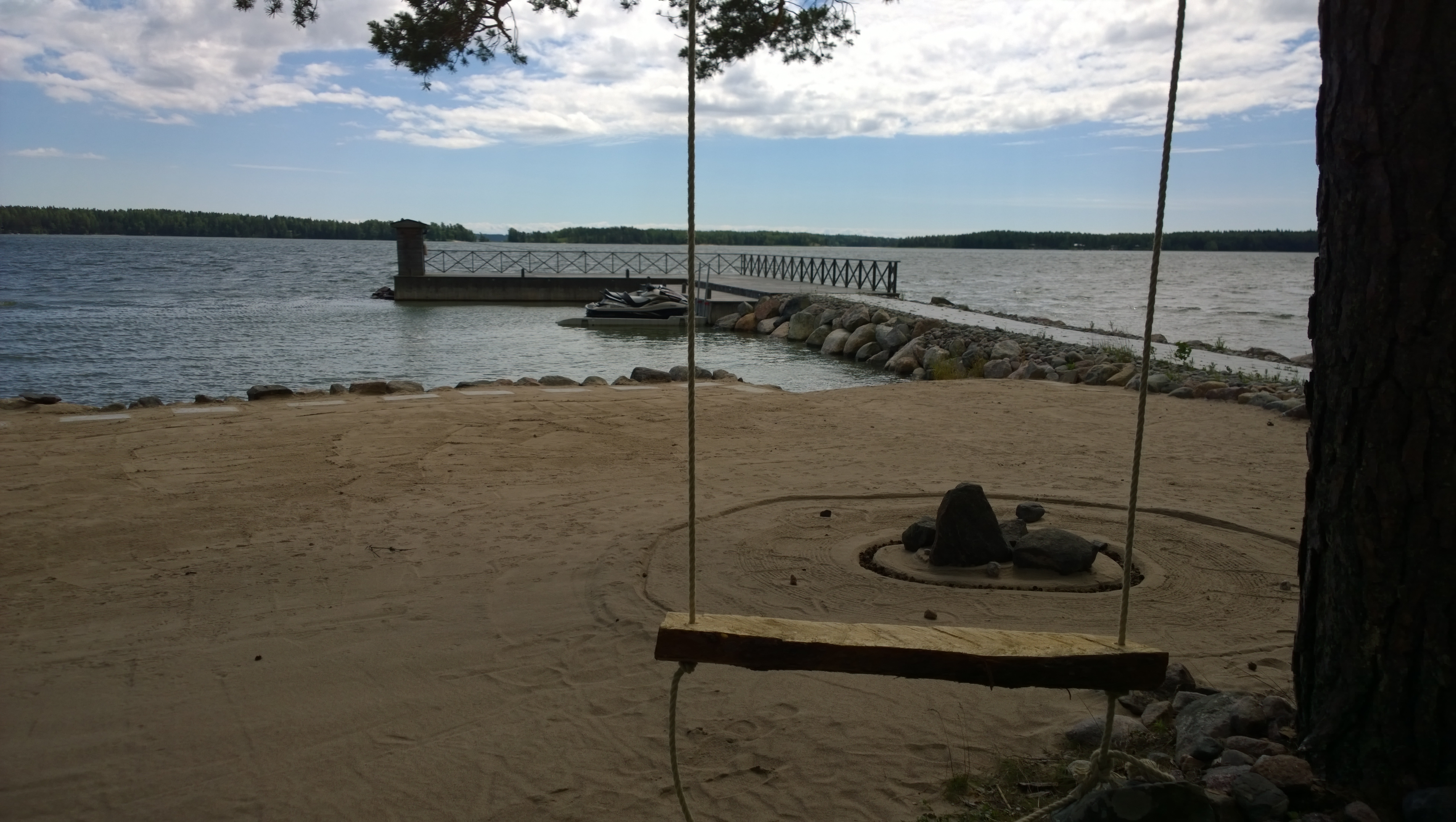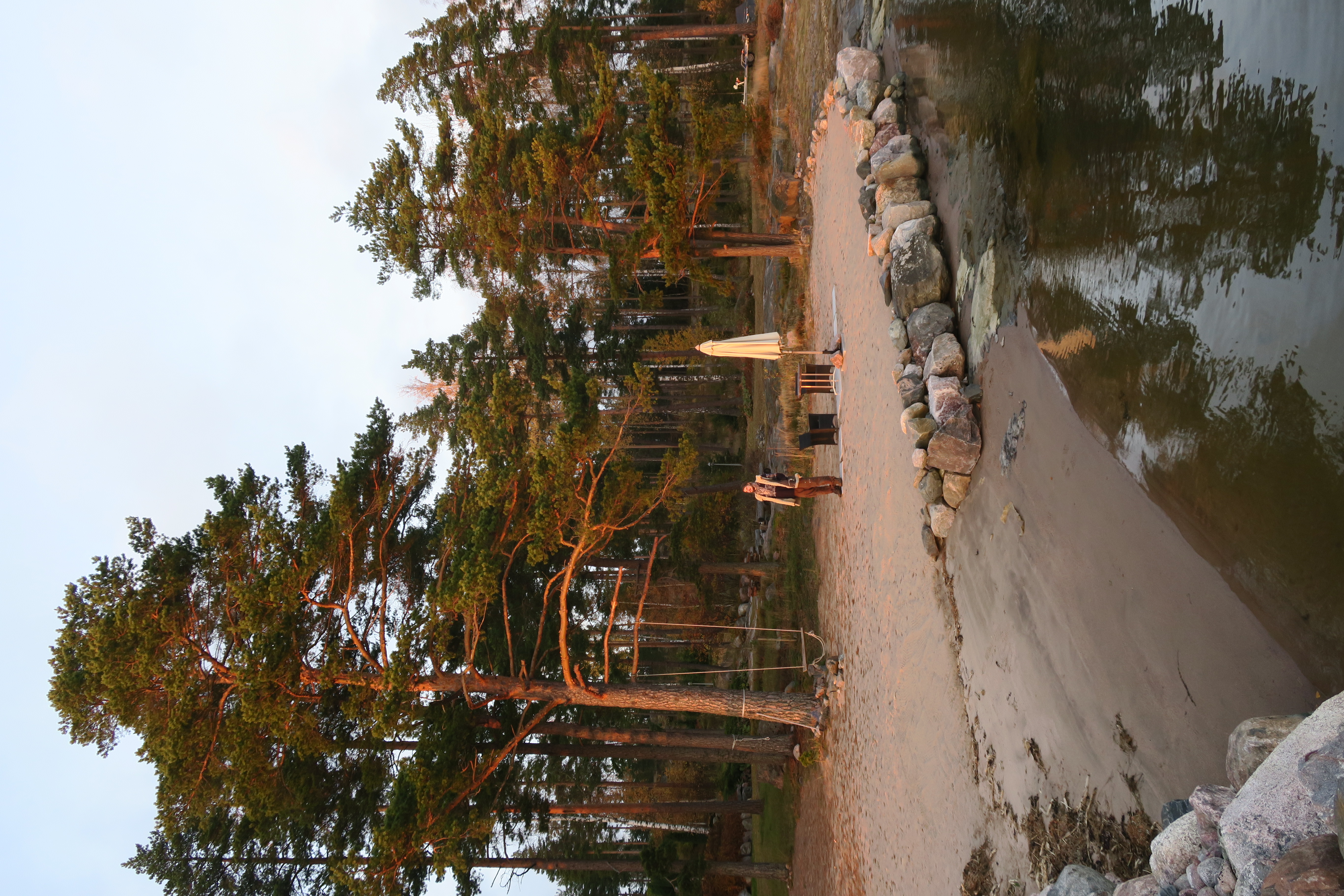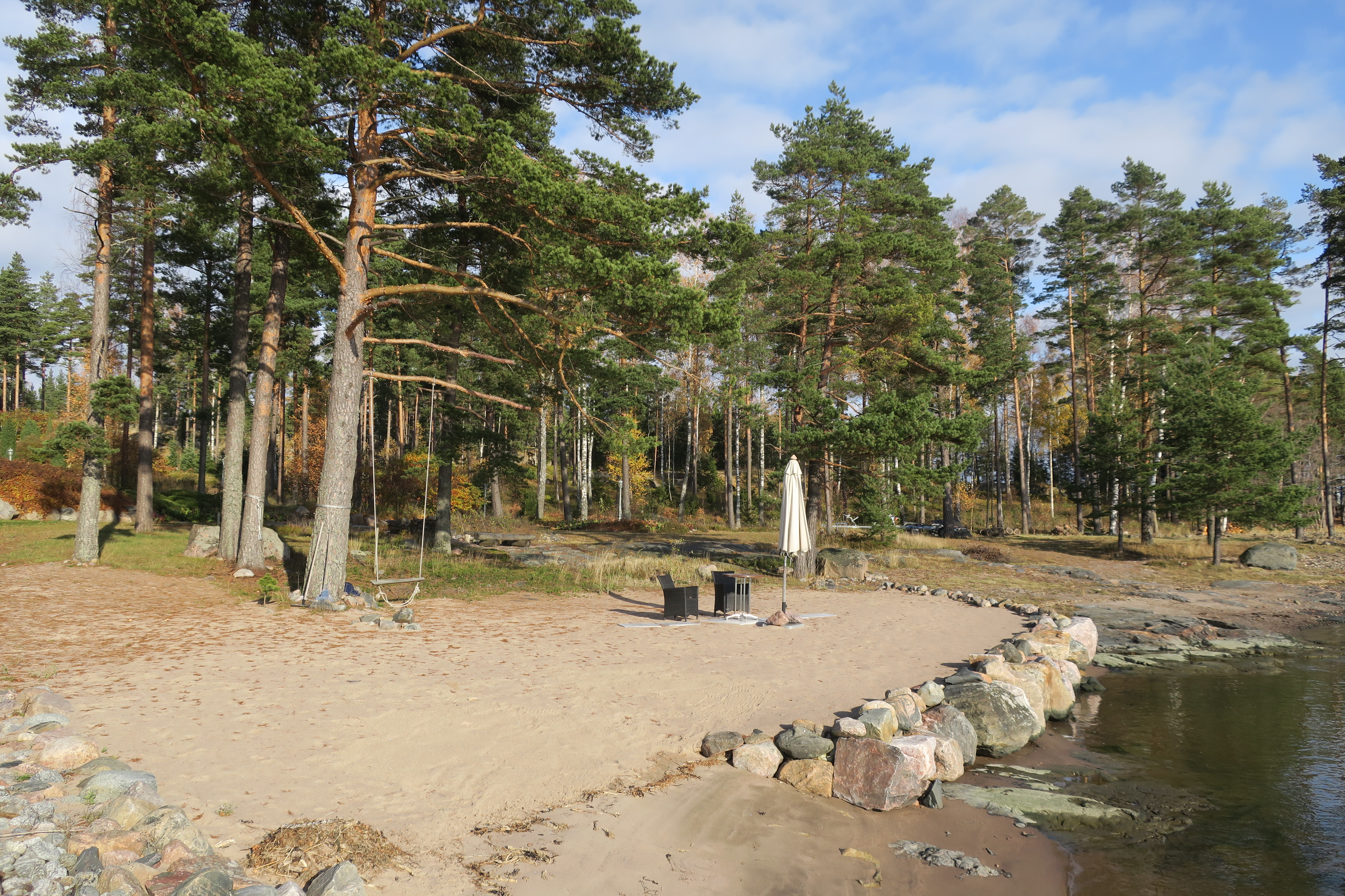 Sunset autumn time, picture shows how carefully the fences have been placed so as not to be visible or disturbing the scenery from the house. The beach also feels natural to the observer.