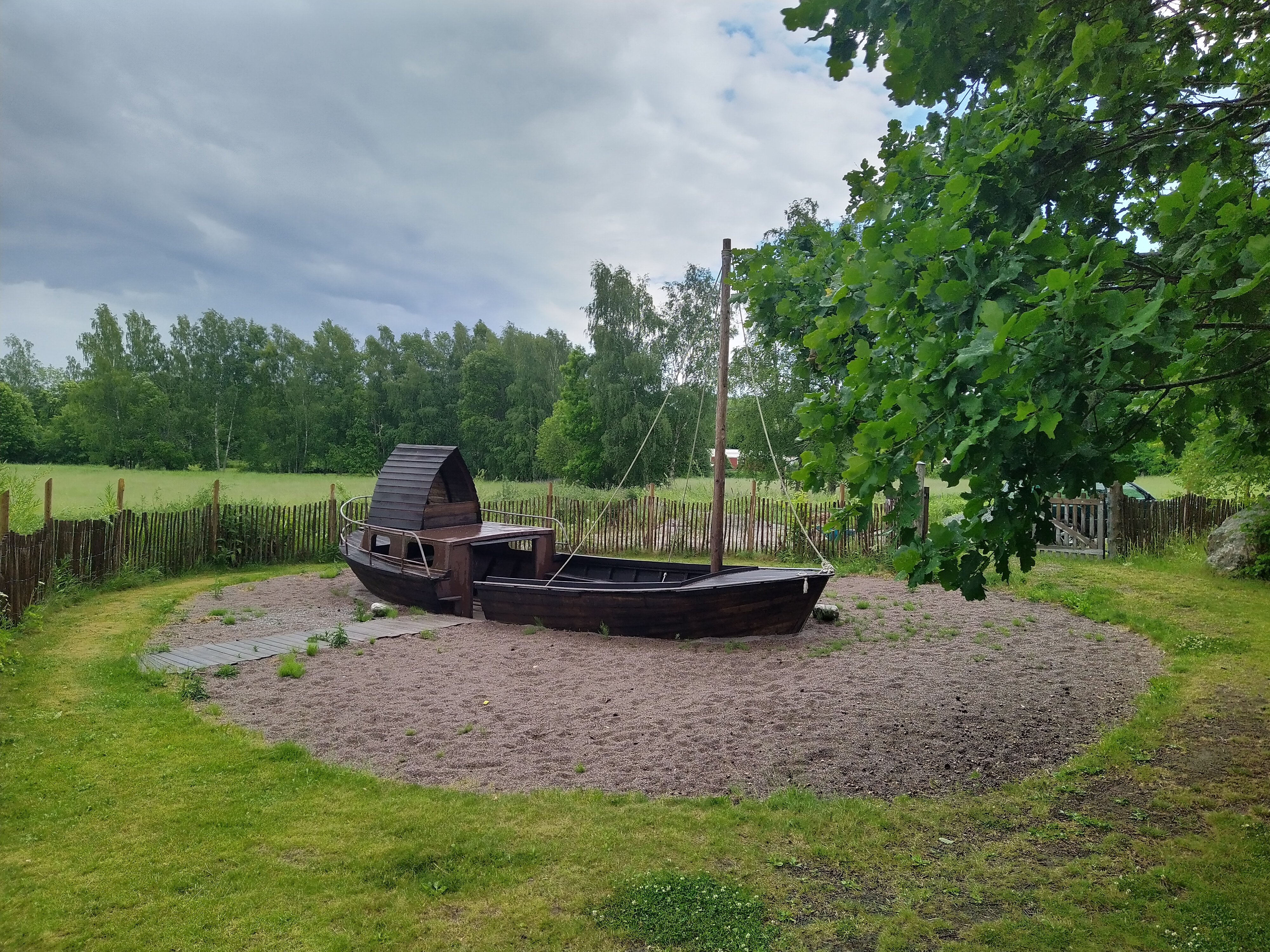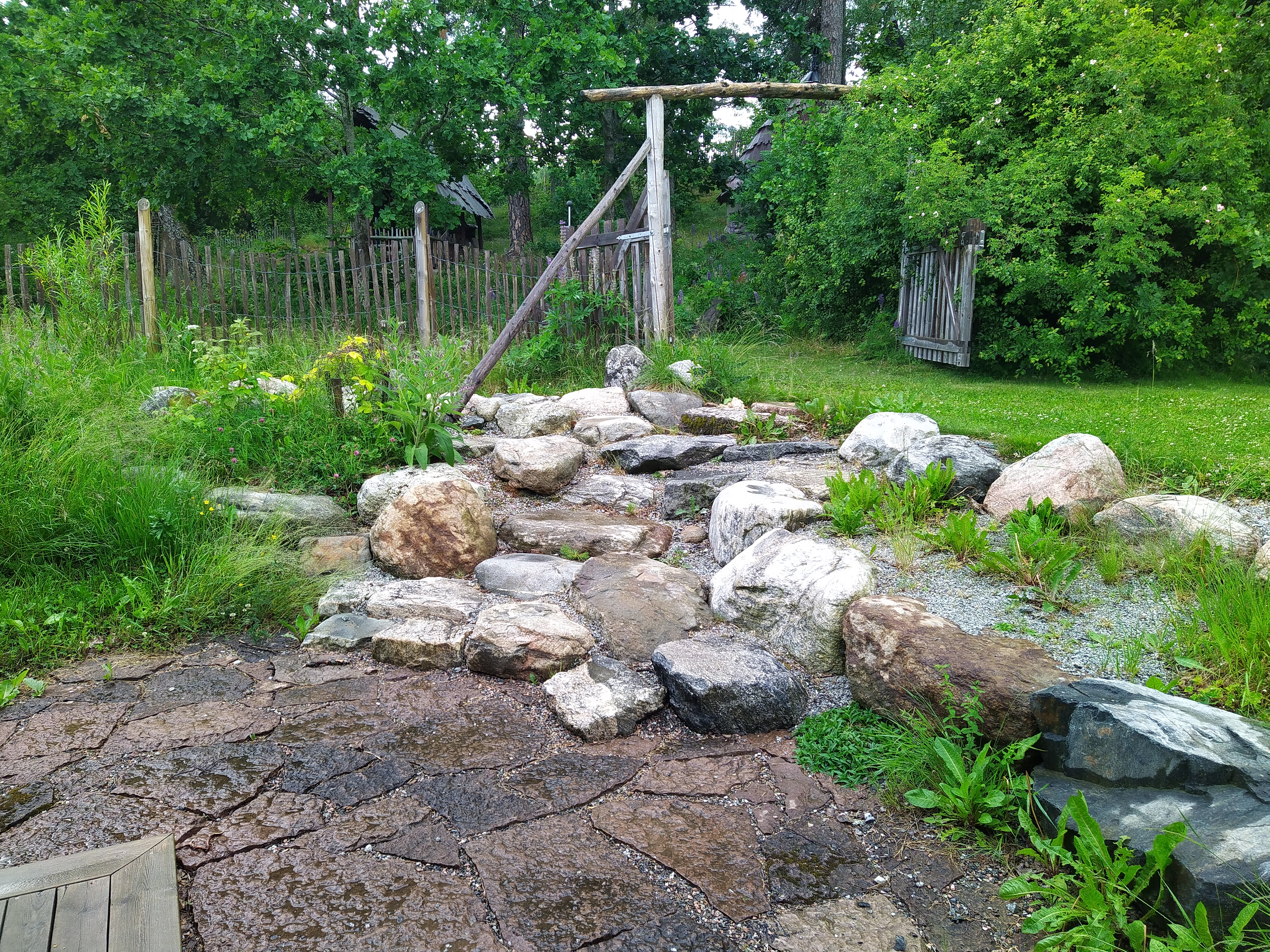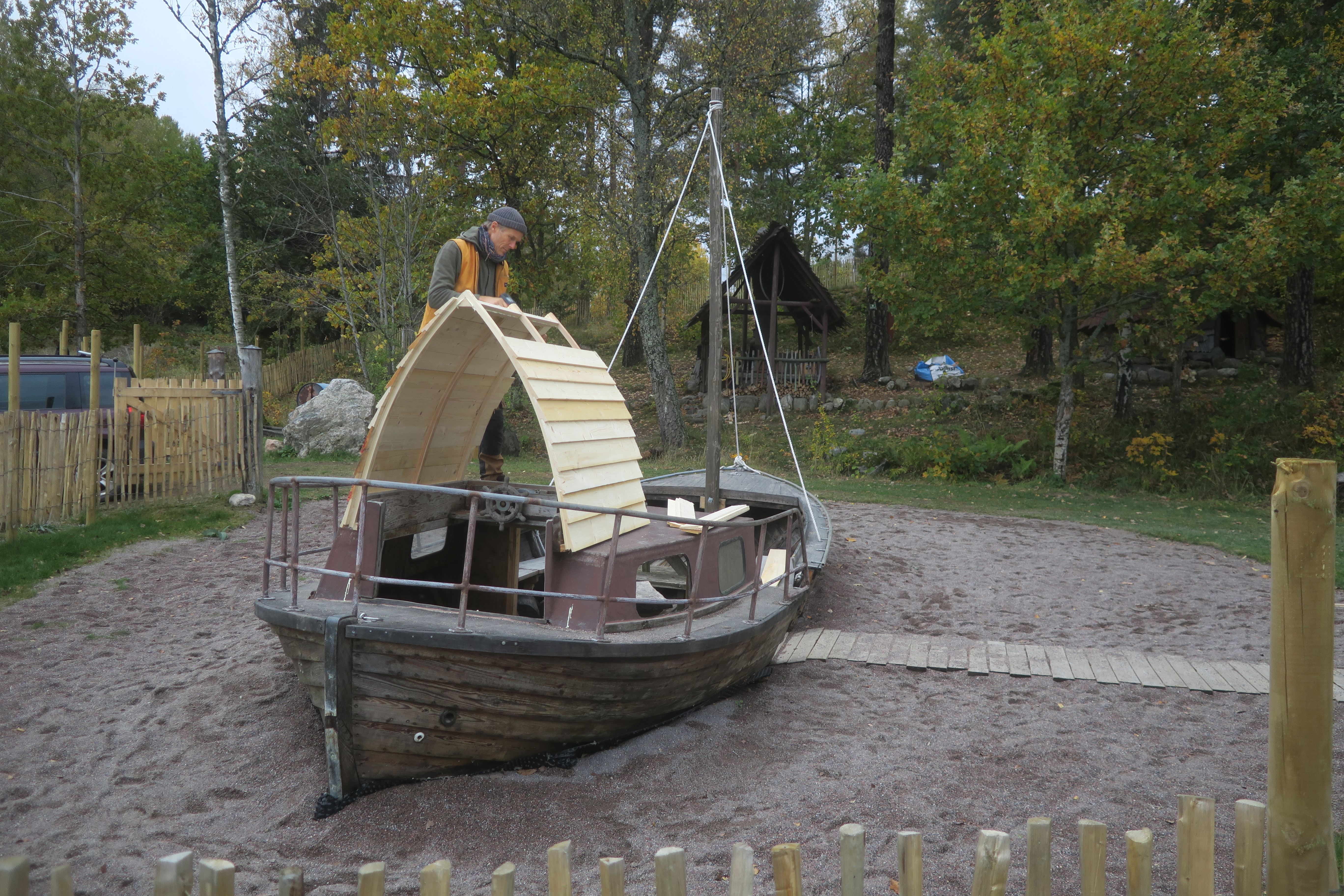 In the beginning I had the honor of collaborating with Torsten Grid, who had been working at Mora Park for over a decade. Together we refurbished an old wooden boat, which we found in the neighbourhood, and placed it in a pit of sand in the schools playground. This new feature led to an overall renovation of this part of the playgrounds. A new lawn, chestnut fence, and willow hedgerow were also added in encircling layers. Additionally a retaining wall of natural stones was placed at the corner closest to the new school building. It doubles as a stairway up to the playground gate. In it also hides drainpipes, as the soil here consists of heavy clay.