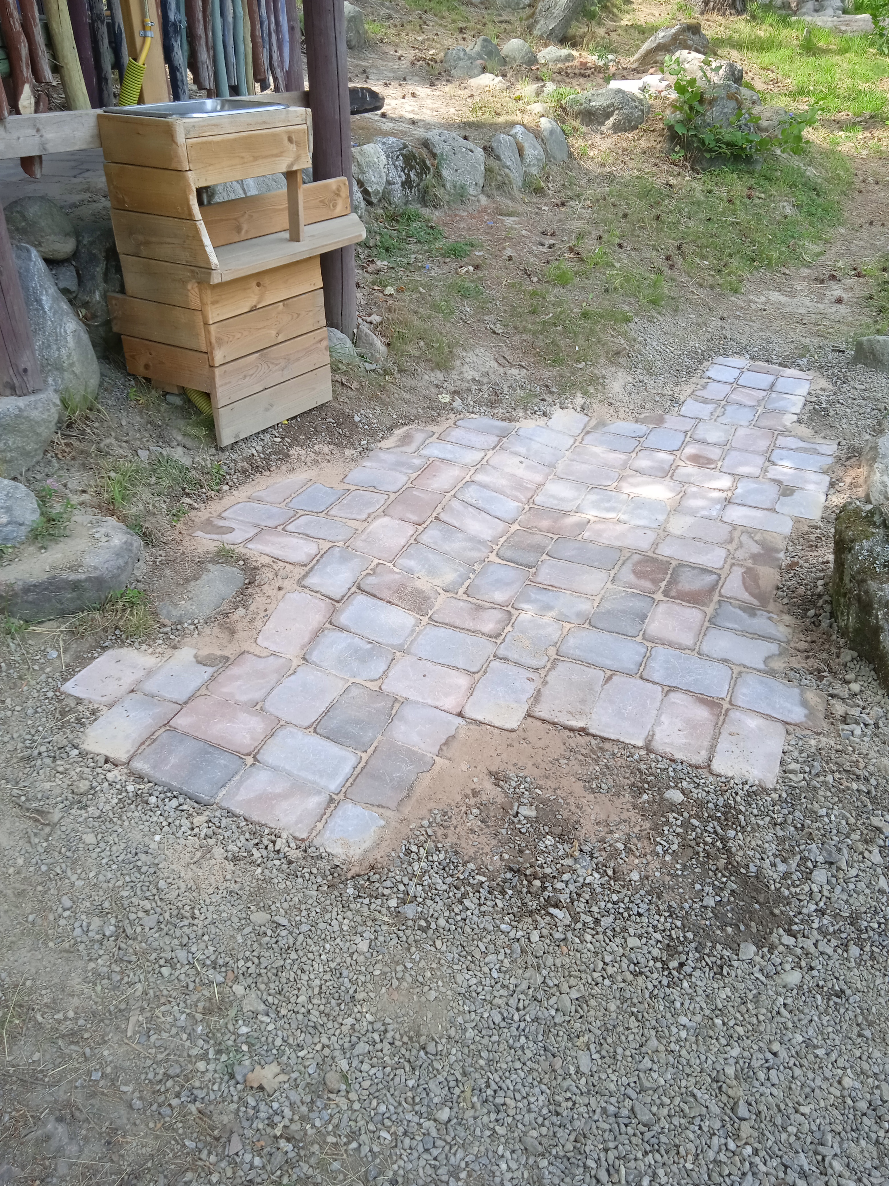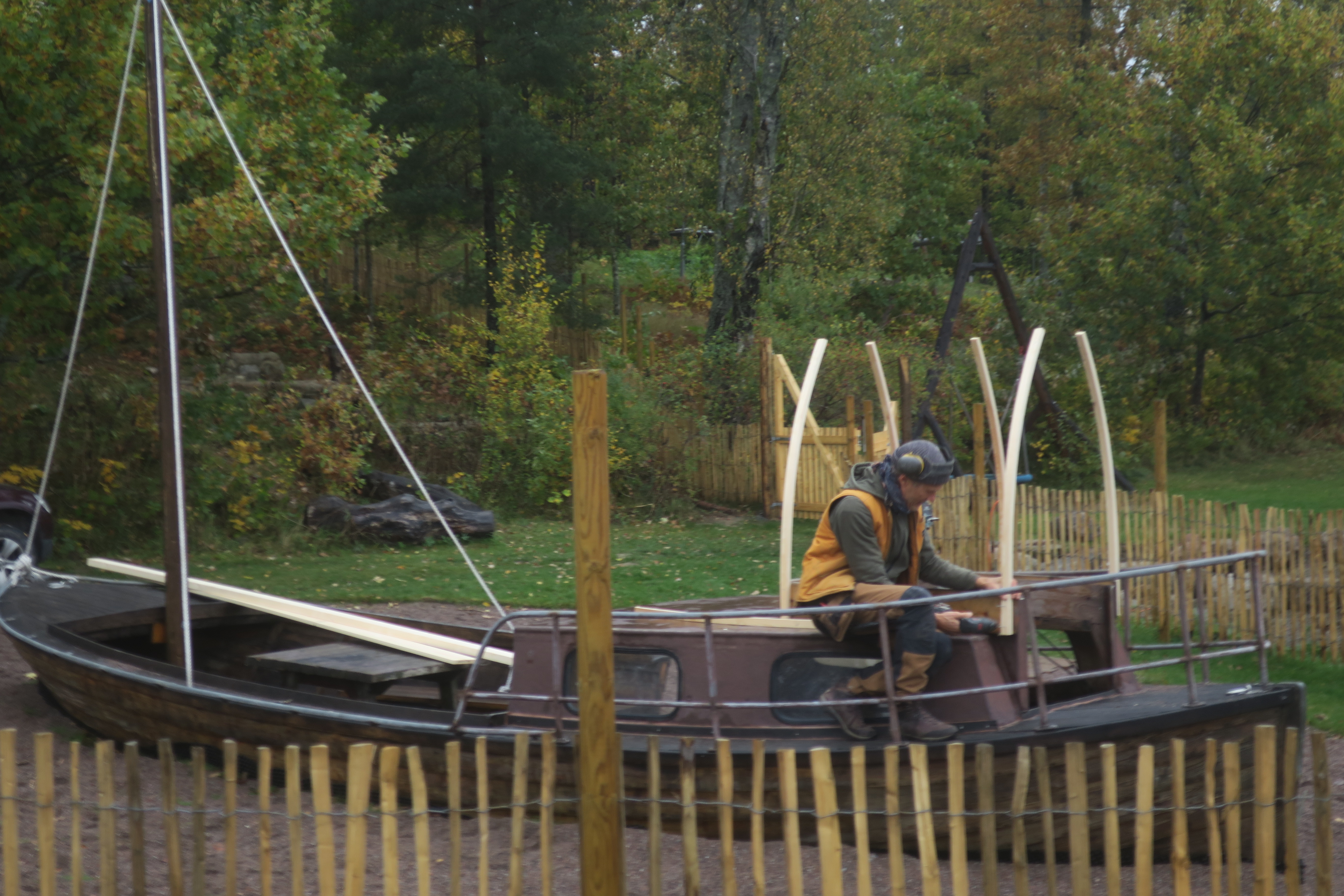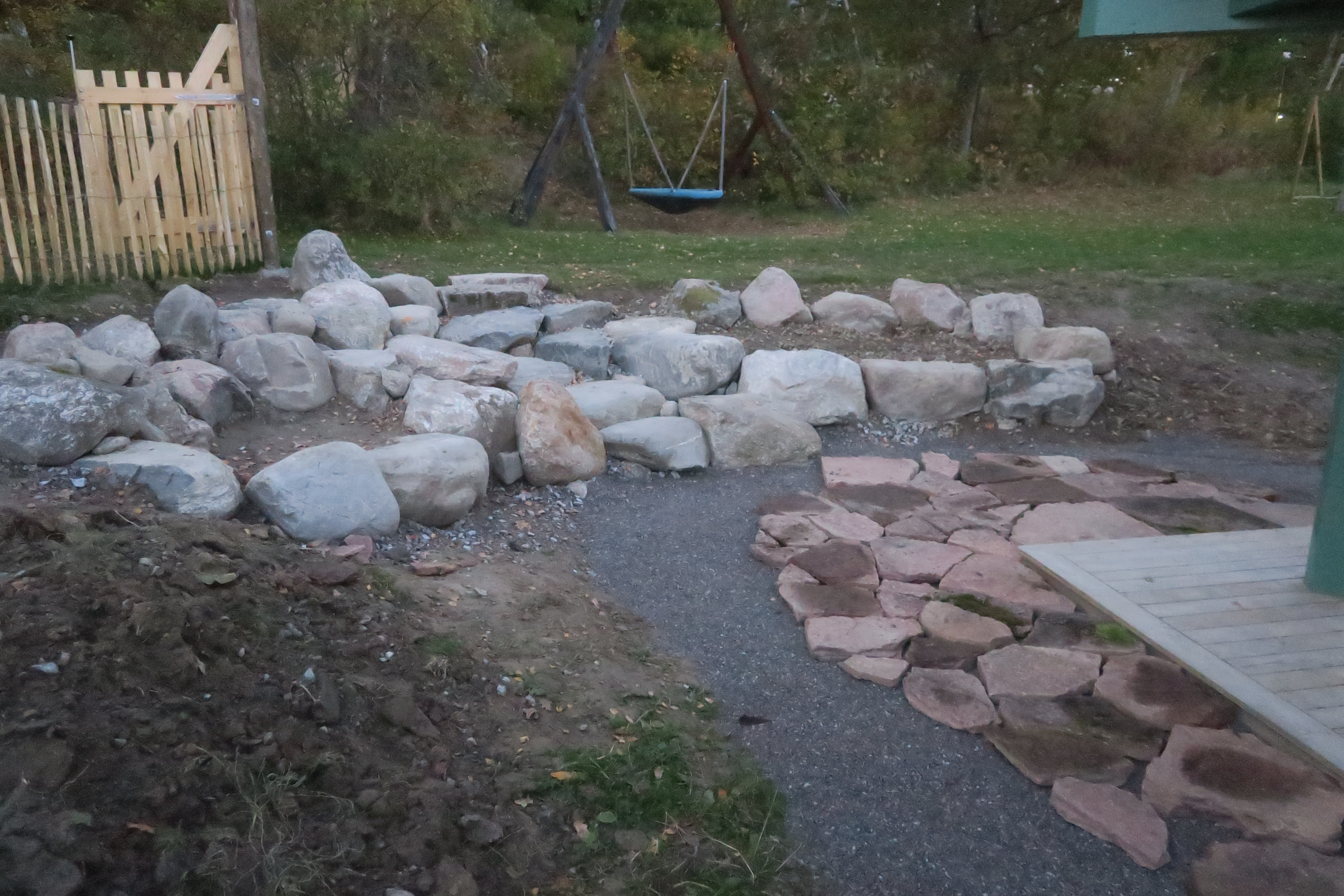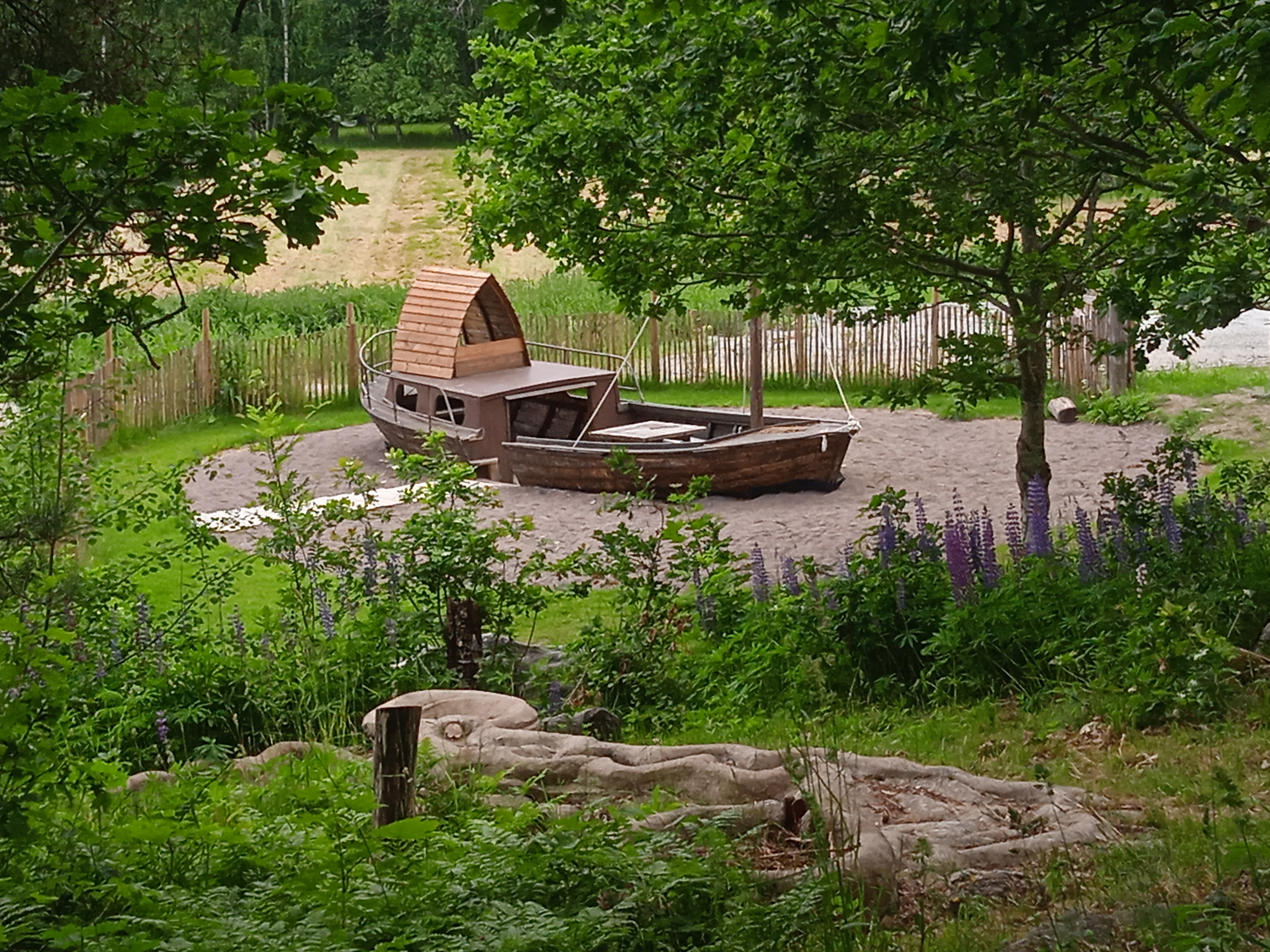 In the beginning I had the honor of collaborating with Torsten Grid, who had been working at Mora Park for over a decade. Together we refurbished an old wooden boat, which we found in the neighbourhood, and placed it in a pit of sand in the schools playground. This new feature led to an overall renovation of this part of the playgrounds. A new lawn, chestnut fence, and willow hedgerow were also added in encircling layers. Additionally a retaining wall of natural stones was placed at the corner closest to the new school building. It doubles as a stairway up to the playground gate. In it also hides drainpipes, as the soil here consists of heavy clay.