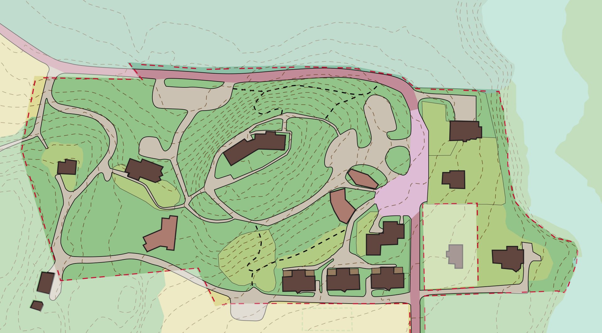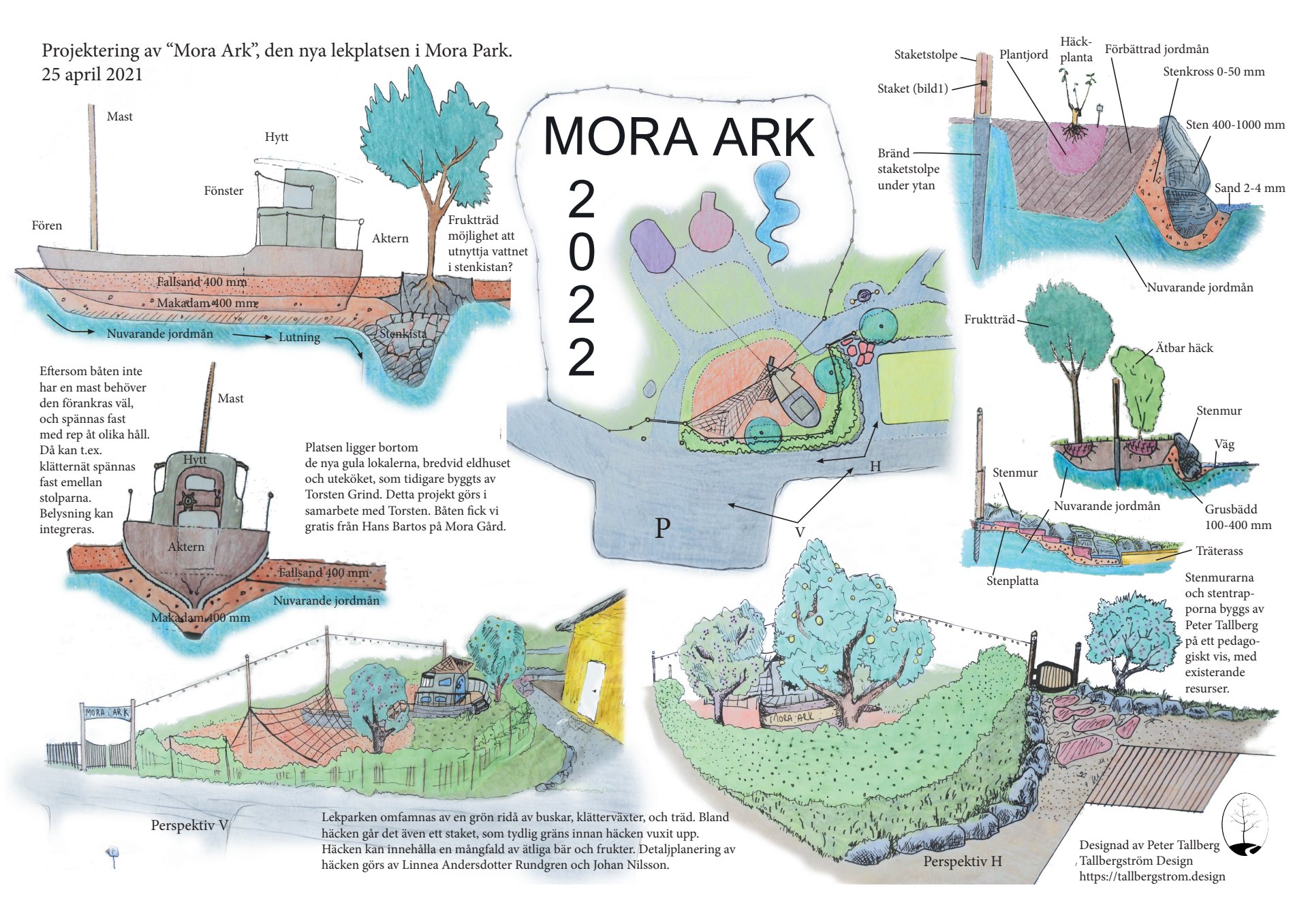 Utifrån vårt önskemål har Peter, noggrant och estetiskt, gjort en landskapsanalys utifrån topografi, placering i förhållandet till samhället och till Mora Parks verksamhet. Som så ofta idag så är det fråga om kommunikation, var går vi, var kör vi. Där kom Peter med hjälp av modern teknik (drönarfoto) fram till spännande förslag till lösningar. Att vi sedan också fick en liten inblick i hur man kan tänka och planera för en framtid med ett förändrat klimat var en tankeställare.